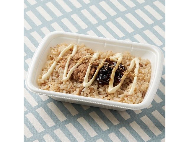 はごろもフーズ×フジッコのコラボ商品です。シーチキンマイルドと昆布佃煮をごはんにのせ、マヨソースをかけました。 ※和歌山県の一部では取り扱いがございません。 関西で販売