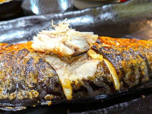 大きな三枚おろしの塩焼きのサバです。炊き立てご飯にもぴったりなおかずです。