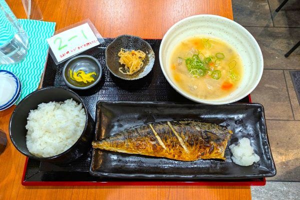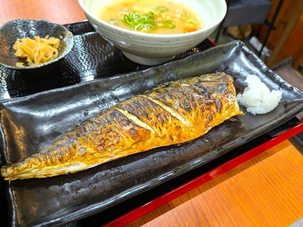 「サバ塩焼きの定食」も800円。ホクホクのサバにご飯が進む!