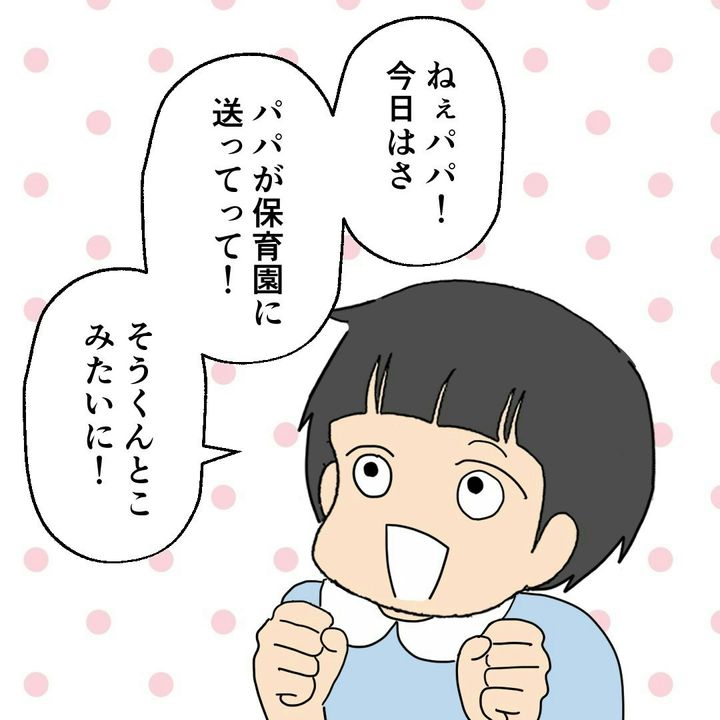 共働き家庭なのに、家事も育児も一切しない夫・狐生。ある日、息子から保育園の送迎をせがまれますが「忙しい」と断ります。妻をヒマ人扱いするのも腹が立ちますが、夫の悪影響が確実に子どもにもあらわれています…。
