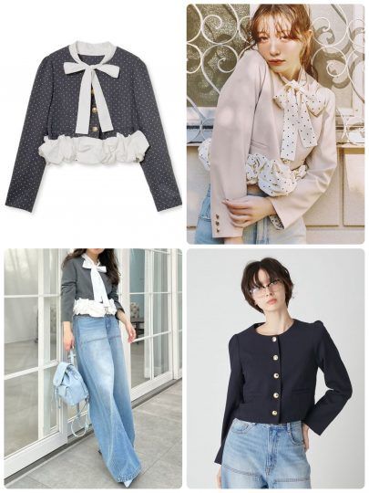 ボウタイとペプラムは取り外し可能なので、シンプルなジャケットとしても活用できます。コンパクトなサイズ感なので、どんなボトムにも合わせやすく、スタイルアップが期待できそう!