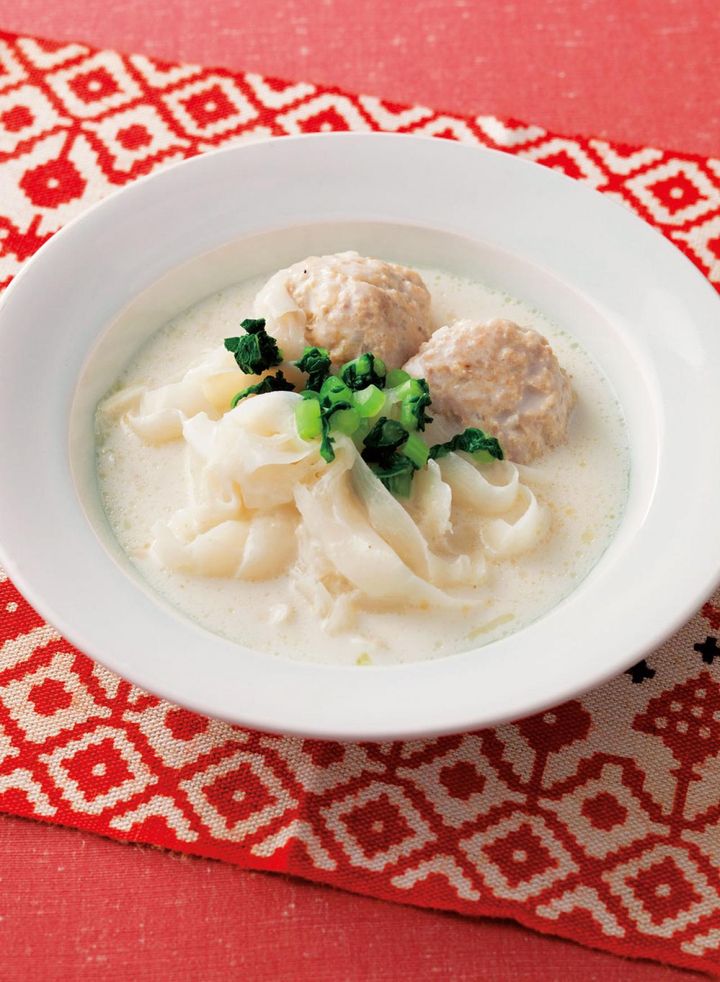 大根の中間を使って、大きめの鶏つくねをゴロンと。体の芯から温まるスープ煮です。