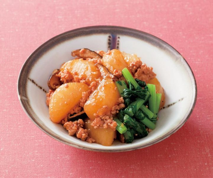 鶏そぼろとしいたけの旨みを大根にしっかり含ませるのがコツ。