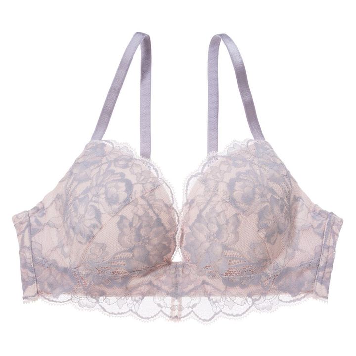 昨今人気なのが、前中心が低く「L」のような形をしているL字型ワイヤーを使用したブラジャー。「U」のような形で前中心までしっかりワイヤーが入っているタイプに比べると、圧迫感を感じにくいのが大きな特徴で、いろんな形のバストに合いやすい。「どんなブラジャーも合わない」「みぞおち辺りにワイヤーが刺さるような感じで苦手」という方には、とくにおすすめ。脇から中央に寄せる、ナチュラルなバストメイク力もあり。前中心が深いデザインなので、Vネックなど胸もとが深く開いた服を着たときも見えにくくて便利。