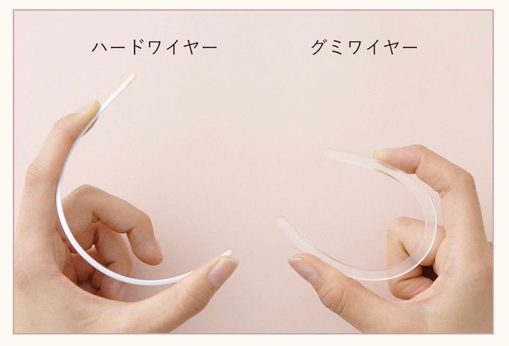 ブラジャーに使用されるワイヤーは、一般的に金属だけれど、実は樹脂製のものもある。写真のように柔らかいため、体にフィットしやすく肌当たりも優しい。バストや体形のさまざまな違いにも対応しやすいのは、ソフトワイヤー同様。それでいてバストをホールドする機能もあるという優秀さ。