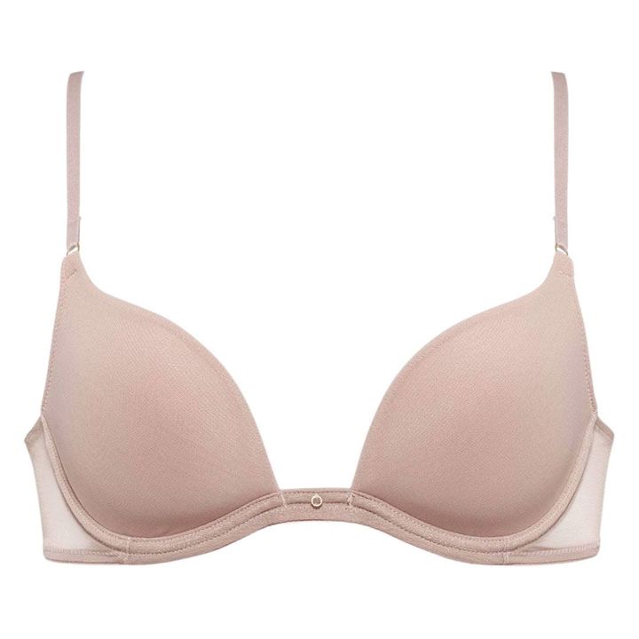 イタリアブランド「インティミッシミ」は、日本でいうL字型ワイヤーに近い形をC字型ワイヤーとしている。バストを横から中央に寄せる機能や、小胸さんにもおすすめなのは同じ。「特別な角度のC字型ワイヤーが胸を持ち上げ中央へ寄せ、立体的なデコルテを実現。薄手から厚手パッドまで展開があり、ボリューム感を出したい方や小胸さんにも最適です」(PR担当/田中八恵子さん)