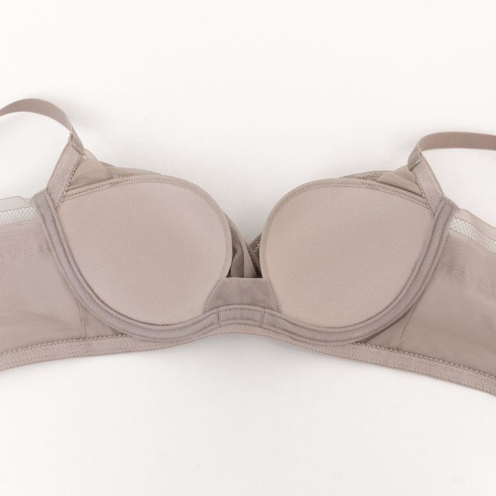 「やわらかい樹脂ワイヤー内蔵のモールドカップなので、ワイヤーのあたりを感じにくくきれいなまる胸をメイク。前中心が低いL字型ソフトワイヤーで脇からバストを寄せて、程よい谷間をメイクします」(PR担当/冨高桃来さん)
