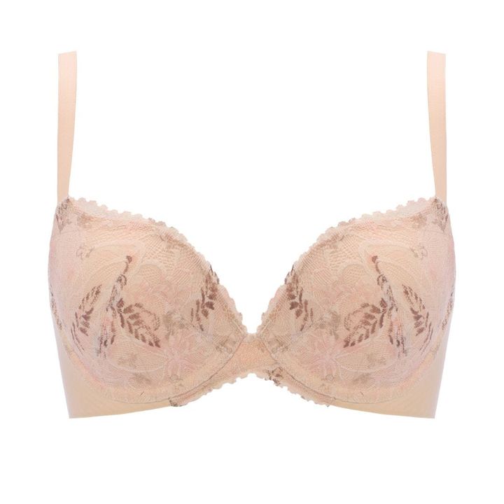 今回はワイヤーにフォーカスしたけれど、ブラジャーのテクノロジーは日々進化中。1946年の創業以来、ブラジャーの研究開発に力を入れる「ワコール」は、新技術を搭載したブラジャーを展開している。その一つが“SUHADA ONE”で、バスト中央に左右カップ一体の極小立体樹脂フレームを内蔵。独自開発のこの立体樹脂フレームがキレイな谷間とふっくらデコルテをつくってくれる。