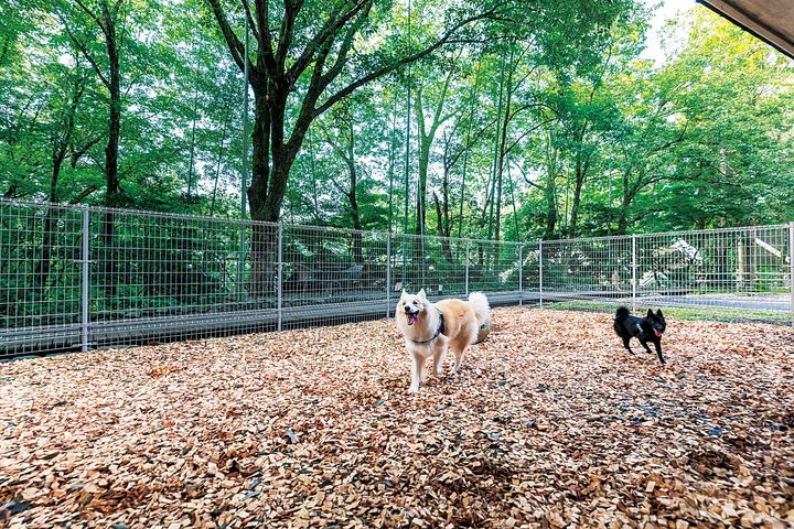 くぬぎと竹林に囲まれたドッグランには、全犬種用と小型犬優先、2つのエリアを用意。どんなワンちゃんものびのび遊べます。