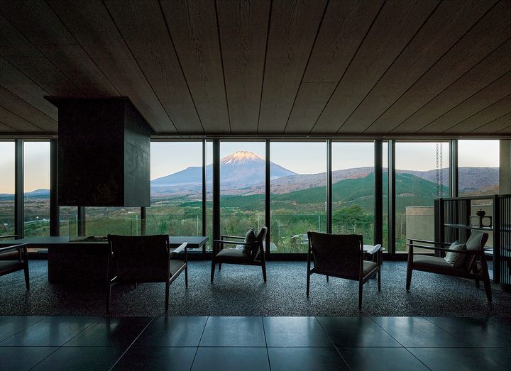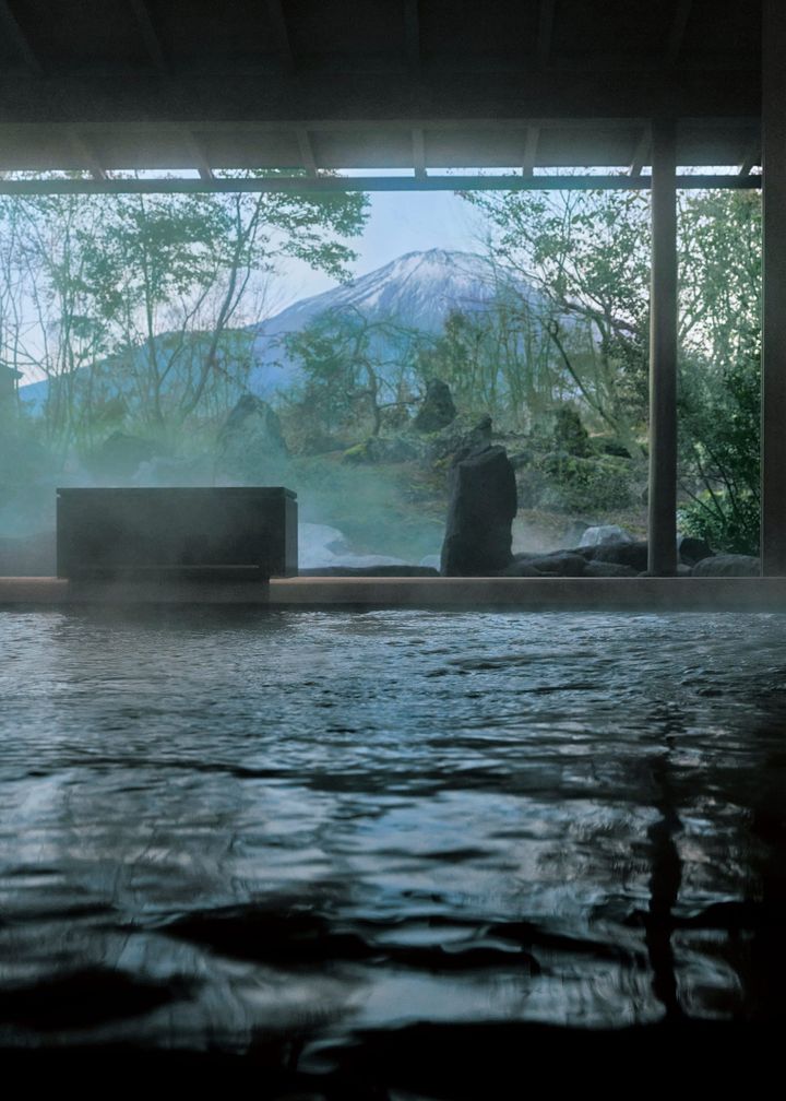 (写真)大地のエネルギーに包まれるような「GORA KADAN FUJI」の大浴場。“美肌の湯”と称される弱アルカリ性単純温泉。富士山を眺めるなら早朝がおすすめ。