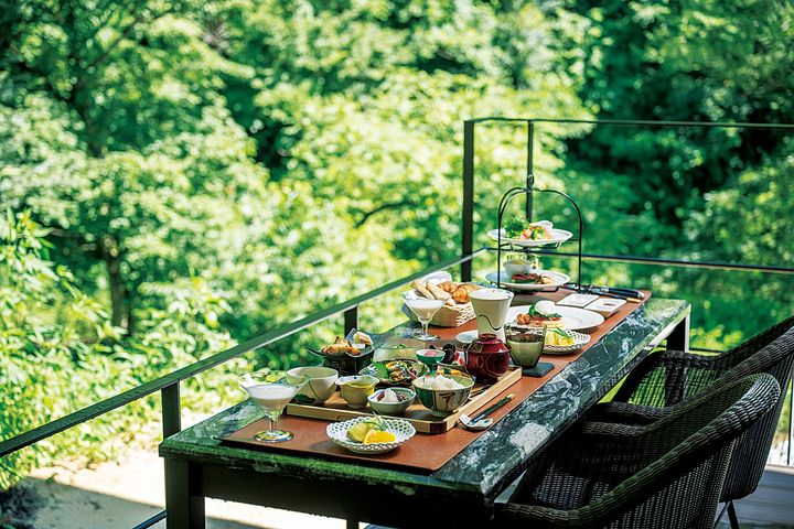 プライベートダイニングで味わう、地元農家から仕入れた新鮮な食材がふんだんに使われた朝食は栄養満点! 天気が良い日はテラスを利用するのもおすすめ。