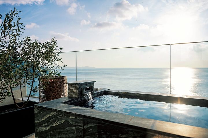 (写真)最上階の「プレジデンシャルスイート」には海と空とつながる感覚を味わえる露天風呂が。インフィニティプールと2つの寝室、サウナや水風呂も備えた贅沢な空間。