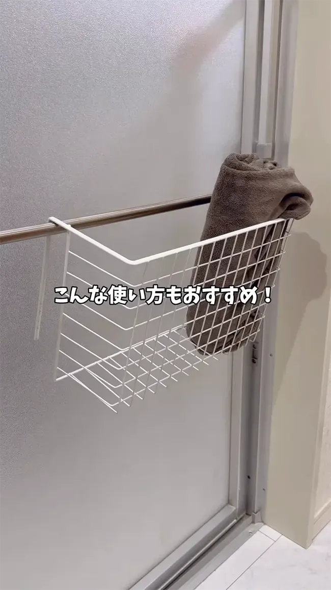 ちなみに、お風呂のドアについているバーにかければ、タオル置き場としても使えますよ!