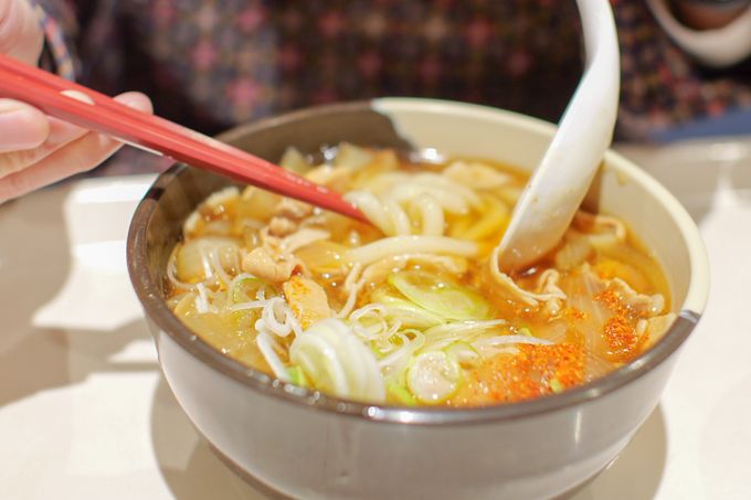 小林:冬にこれはいいわ。肉も玉ねぎもどっさり入っています。非常に美味しい。家でめっちゃ手間かけて作った本気のうどんって感じ。