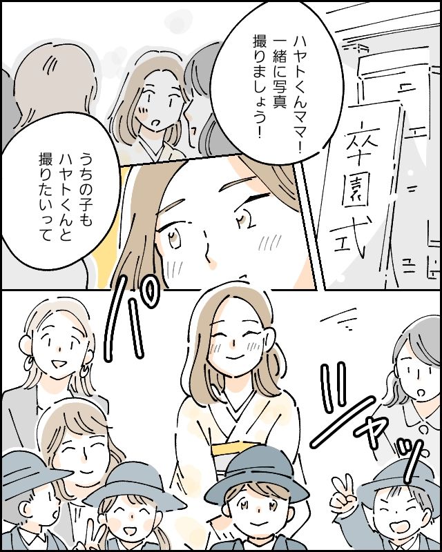 幼稚園ではたくさんのママ友ができました。「どうやったらハヤトくんみたいに賢くなるの?」「〇〇ちゃんがハヤトくんと結婚したいって言ってたみたいよ。」そんなママ友たちの言葉がとても心地よく、卒園式では息子や私と写真を撮りたいというお母さんたちに声をかけられ大満足でした。