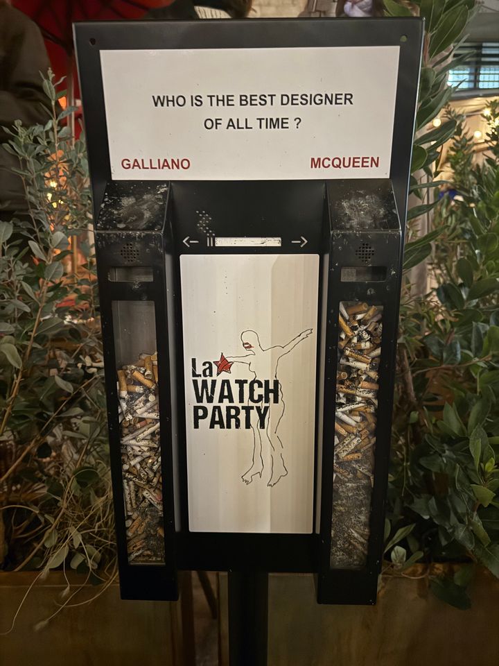 パリジャンならではの発想(笑)! たばこの吸い殻で、好きなデザイナー対決が繰り広げられていました。 Hearst Owned
