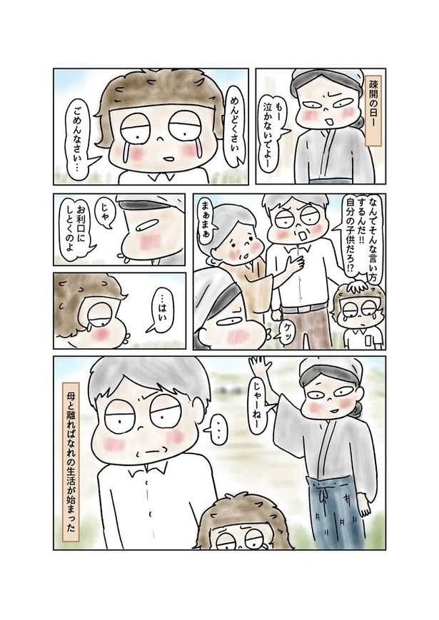 今回は、忍者ママさんの母「えっちゃん」の幼少期について。戦時中、父方の祖父母の家に疎開することになったえっちゃん。母と離れ離れの生活に寂しさが募り、やがてある行動に出る…。