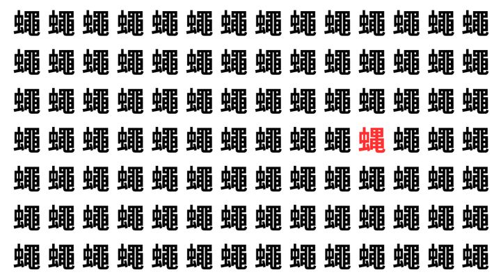 たくさんの「蠅」の中に、よく似た別の漢字が1文字だけ隠れています。