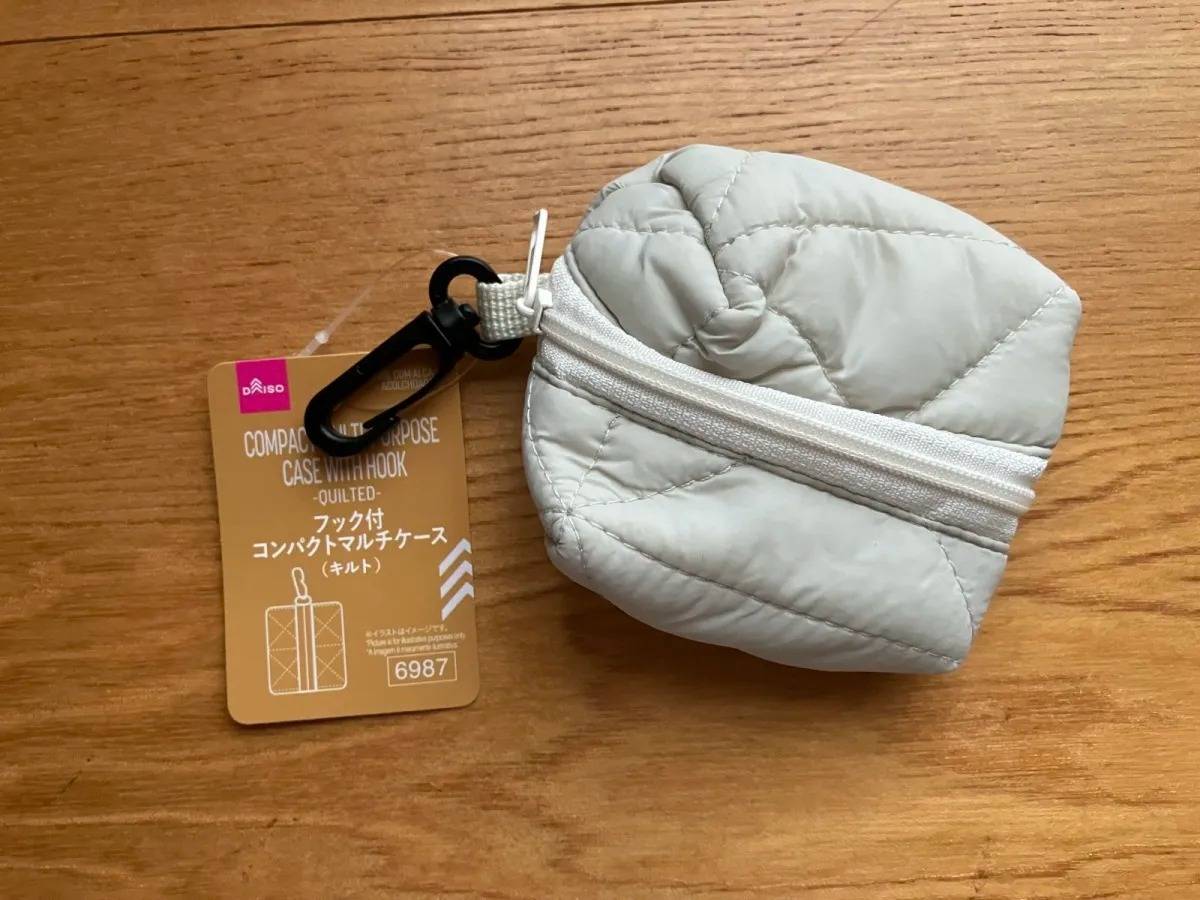 DAISO(ダイソー)の「キルトフック付コンパクトマルチケース」は、バッグなどに吊り下げられる、フック付きの小物入れ♪