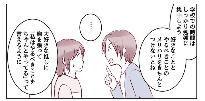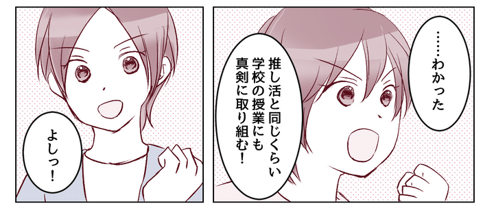ミユは私の言葉を聞いて、「推し活と同じくらい、学校の授業にも真剣に取り組む」と約束してくれました。