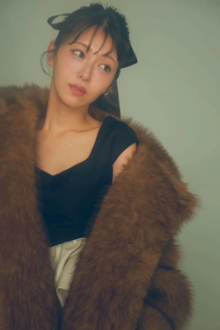 ファーコート 48,400円、トップス20,900円/ともにTHE TOE リボンイヤーカフ 8,800円、リボンリング 30,800円/ともにLOVE BY e.m.(e.m. 青山店)リボン/スタイリスト私物