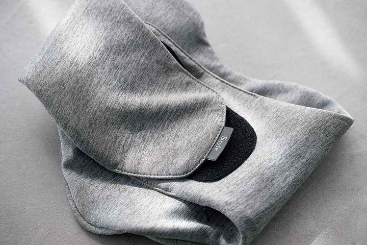 リラックスタイムに装着して姿勢改善を目指す商品。重い頭を常に支えて縮まった首の筋肉を気持ちよく伸ばせる。スタイルポータブル ネックフィット ¥5,060/MTG