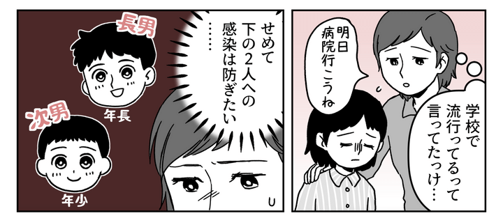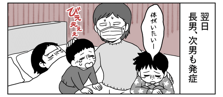 長女がかかってしまった……が、せめて下の2人の子への感染は防ぎたい。そう思ったときにはもう手遅れだったのでしょう。翌日、長男、次男も発症してしまいました。