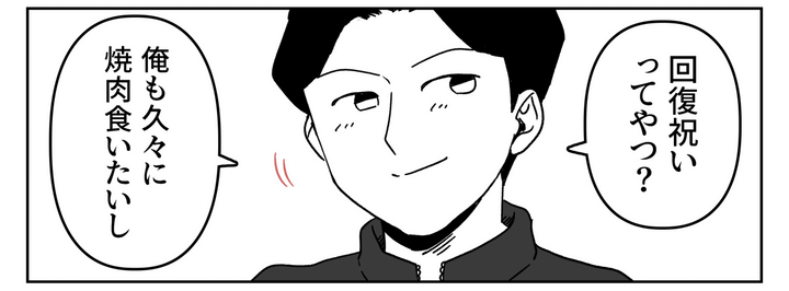 待ってましたと言わんばかりに部屋に入ってきた旦那。「回復祝いに焼肉だな」なんて信じられないことを言い出しました。