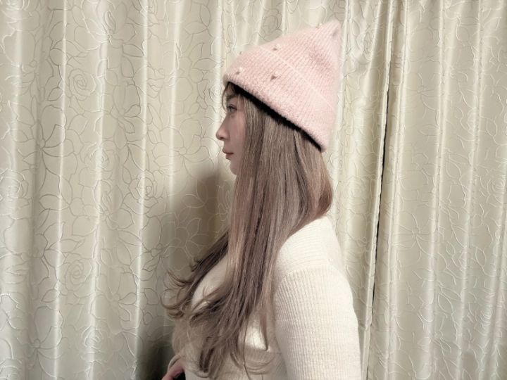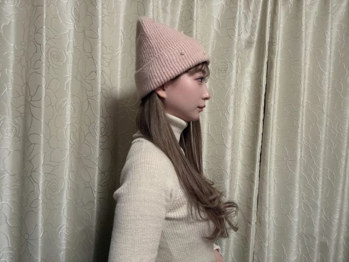 最後にニット帽をかぶって完成♡私は『H&M』のニット帽を使いました♪甘めのデザインとカラーがお気に入り♡