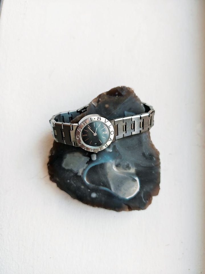「昨年、32歳でイギリスに移住する直前に母から譲り受けた“ブルガリ・ブルガリ”。母が15年前に購入したもので、ジュエリーボックスからふと差し出してくれました。この時計を見るたびに『母のようなかっこいい女性になるぞ!』と自分を奮い立たせる日々。もはや時間を確認する道具というより、私をいつだって奮い立たせてくれるお守りのような存在です。