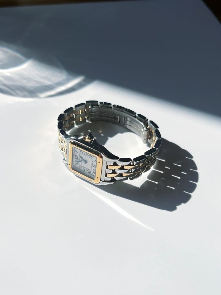「31歳の誕生日を迎え、記念に“パンテール ドゥ カルティエ”を購入しました。決め手となったのは私物のゴールドアクセサリーになじむこと。お世話になっている先輩スタイリストさんとライターさんに付き添ってもらい、ステンレススチール×イエローゴールドのコンビを一緒に選んでもらいました。
