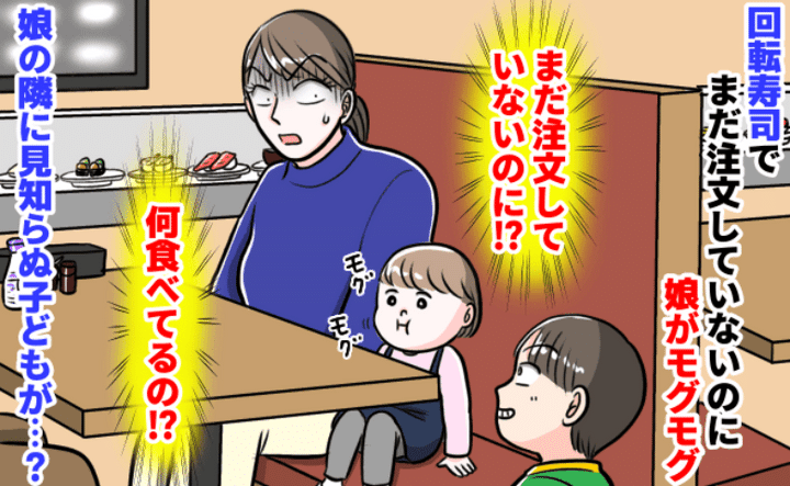 3. まだ注文してないのに娘の口がモグモグ…「何食べたの!?」回転寿司で後ろの席の子どもが驚きの行動を!?