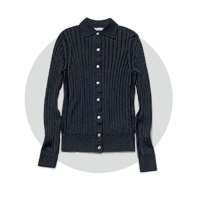 メリノウールにシルクも織りまぜた、肌ストレスを感じさせないなめらかな風合い。太めのリブにフロントボタンもあしらい、ミニマルな形ながらもの足りなさはなし。