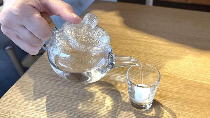 実は、席について最初にお水とともに出してくださるのが、お湯を注ぐタイプのおしぼり。