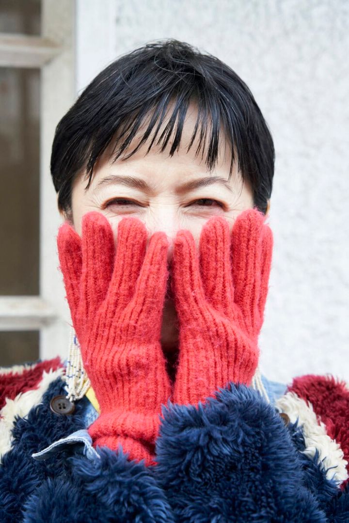 「自転車に乗るとき、愛犬の散歩のときなど、手袋はマスト。ユニオンジャックのカラーに合わせて、赤の手袋をはめました」(藍田さん)