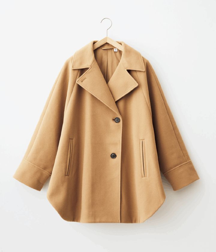 ケープ風のシルエットがおしゃれ感をアップ。肩掛けにすればさらにこなれ感が。
