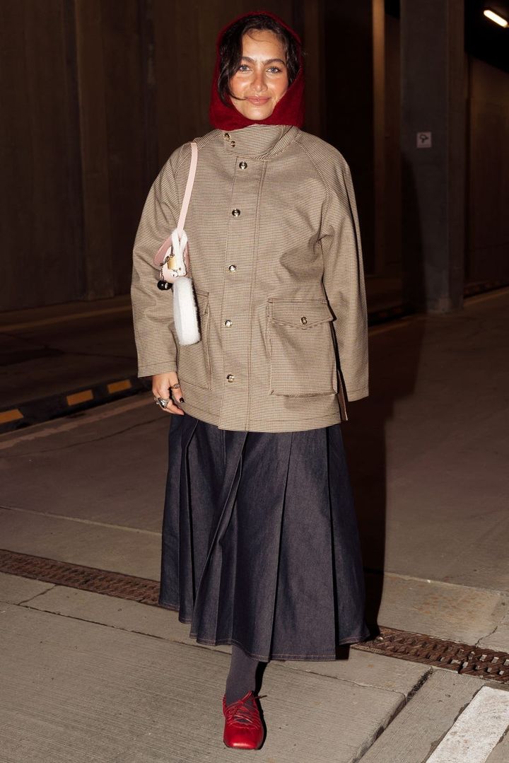 2026年春夏コレクションのランウェイで数多く見られたユニークなスカート使いを見れば、その魅力に気づくはず。足元には保温性の高いサーマルタイツや裏起毛タイツを合わせるのがベスト。チェック柄アウターを羽織り、鮮やかな赤を差し色に効かせれば、洗練されたスタイルの完成。