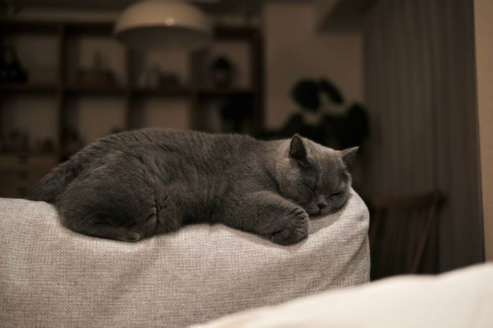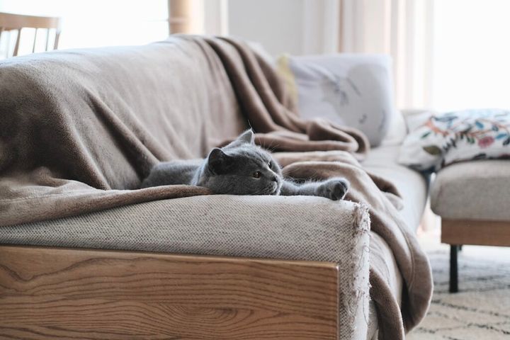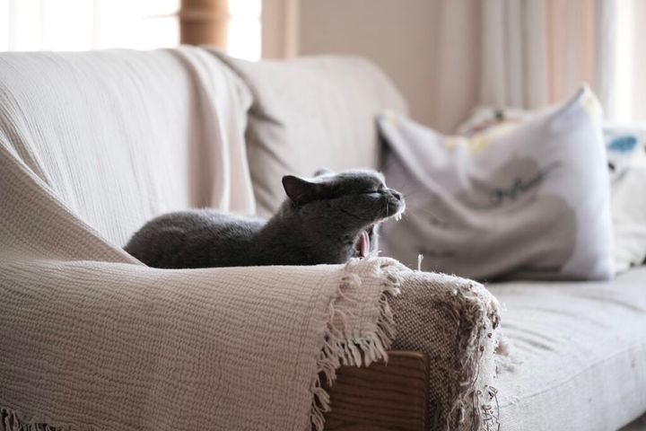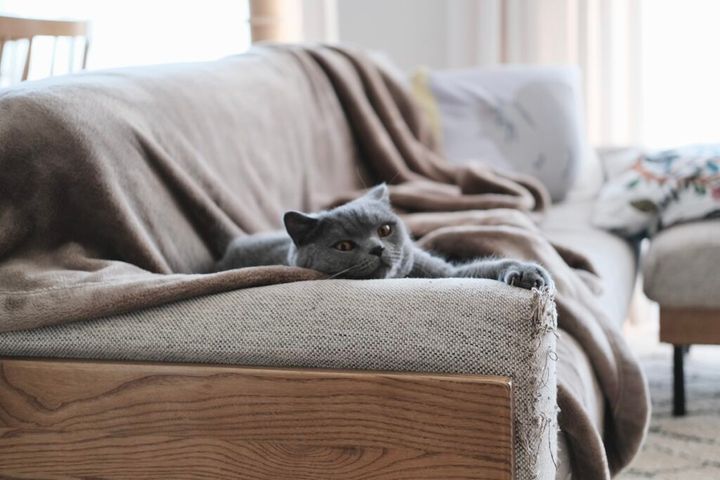 ぼくの愛するボロボロソファ。布の生地に爪がひっかかる具合が最高で、寝そべると体にしっくりくるんです。
