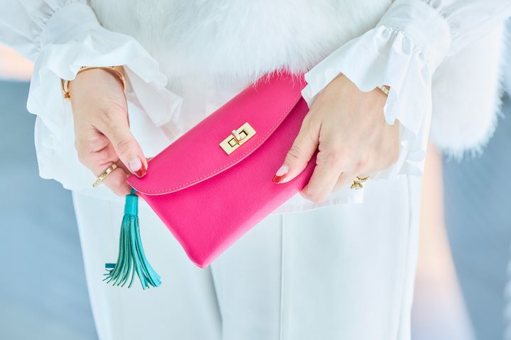 職人さんの手作りブランドのフィロソフィでオーダーした財布は、鮮やかなピンクとターコイズブルーのタッセルのコントラストがお気に入り。内側には名前を刻印してもらいました。「それどこの?」と聞かれることが多く、会話の糸口にもなっています。