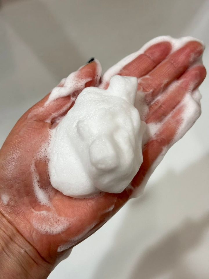 ふわふわ&モコモコの泡がお肌をやさしく包み込んで、ヨゴレをオフ。しっとりした洗い上がり!