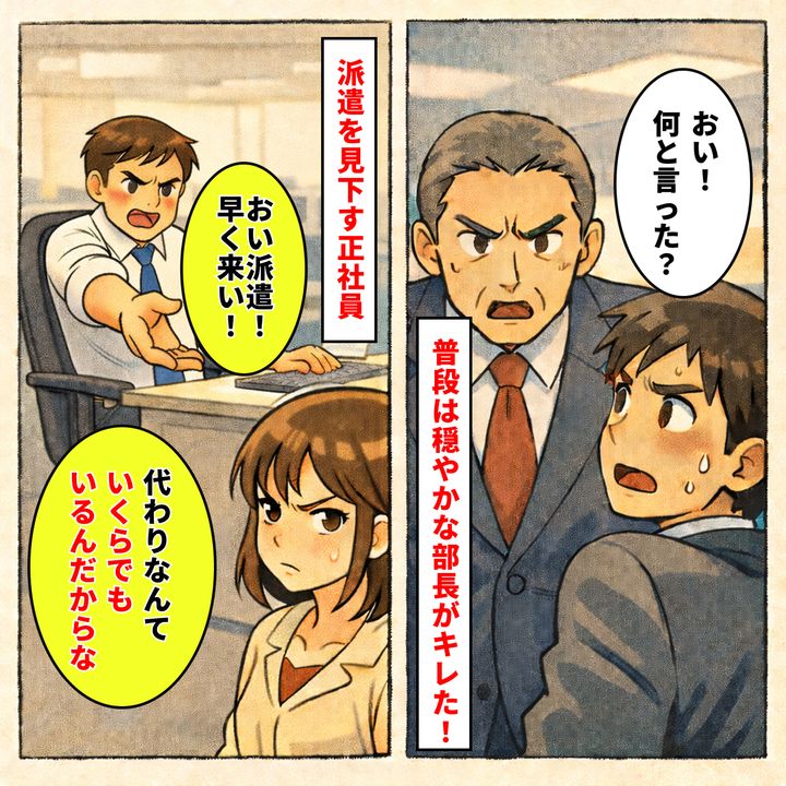 すると彼は調子に乗ったのか、「これだから派遣は困るんだよ。代わりなんていくらでもいるんだからな」と吐き捨てたのです。