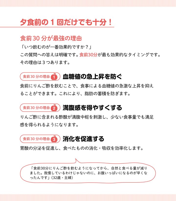 2. りんご酢をいつ飲むのが一番効果的?食前30分前が最強の理由は…【りんご酢飲むだけで痩せていく ご飯もお酒もガマンなし #3】