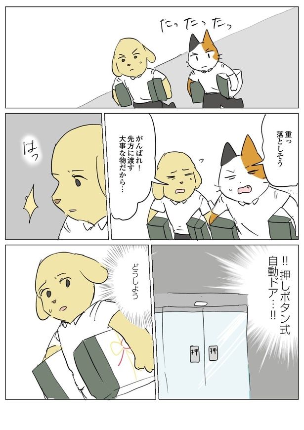 3. 「頭」を使って状況を打破! 両手が塞がってる時に、ドアを開く方法/働く!くよくよ犬㉞