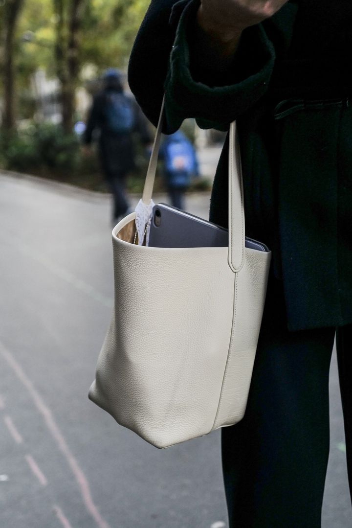 「ザ・ロウ」のオフホワイトの“パークトート”を愛用。パソコンも入るざっくりとしたバッグが日常に活躍。