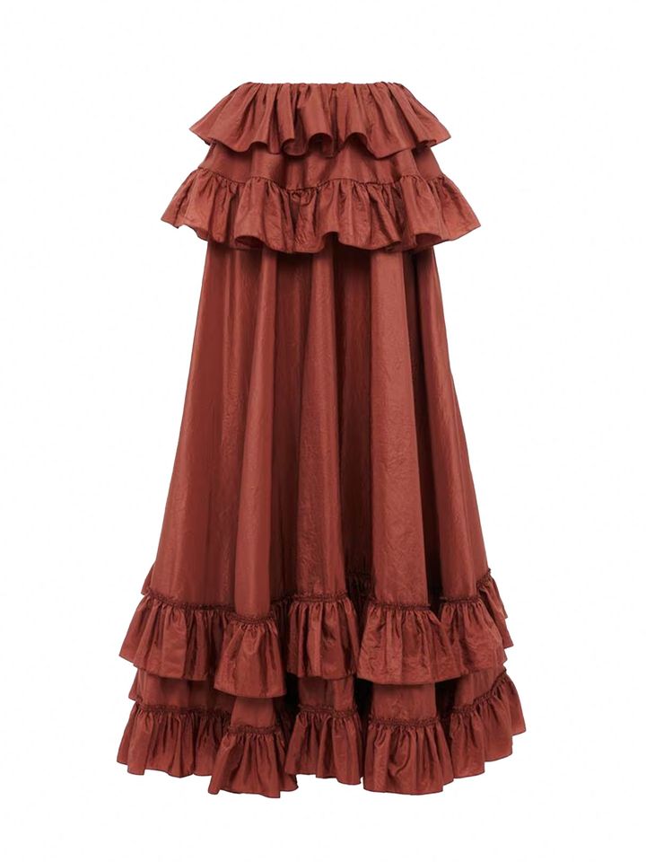 前述のシャネルに始まり、ボッテガ・ヴェネタBOTTEGA VENETA)やロエベLOEWE)、バレンシアガBALENCIAGA)、ケイトKHAITE)、アルトゥザラ(ALTUZARRA)のコレクションでは、職人技への愛と大胆な色使いが共通している。中でも注目したいのが、シンプルなトップスと組み合わせた派手なステートメントスカート。その質感とドラマティックなプロポーションに目が釘付けになる。ルル・ド・セゾン(LOULOU DE SAISON)のトップはニュートラルでありながらもフリンジが目を惹く。ティアードマキシスカートを選べば、シンプルなニットとともにプレイフルな着こなしが楽しめる。