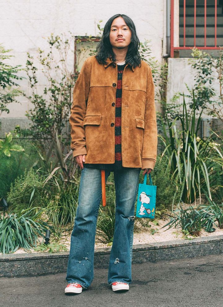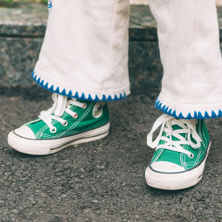足元のディテールに注目!アメリカンポップな『コンバース』で、とことんムードを統一。