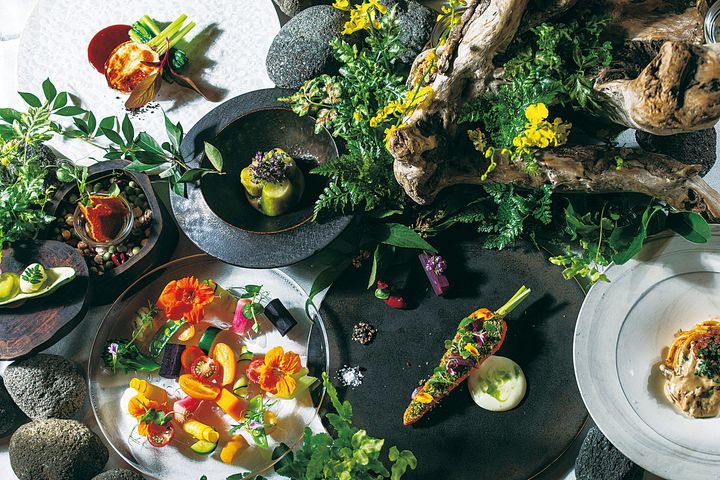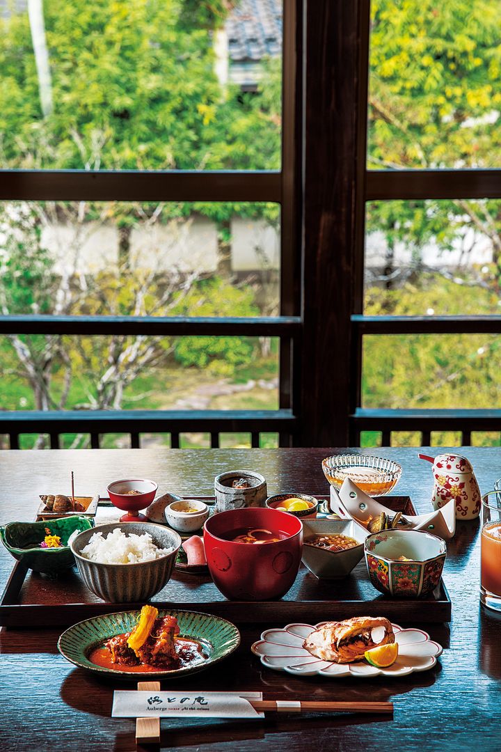 エレ派のごほうび旅にはその土地ならではの美食も欠かせない要素のひとつ。温泉も楽しめるオーベルジュで五感が喜ぶ時間を過ごして。