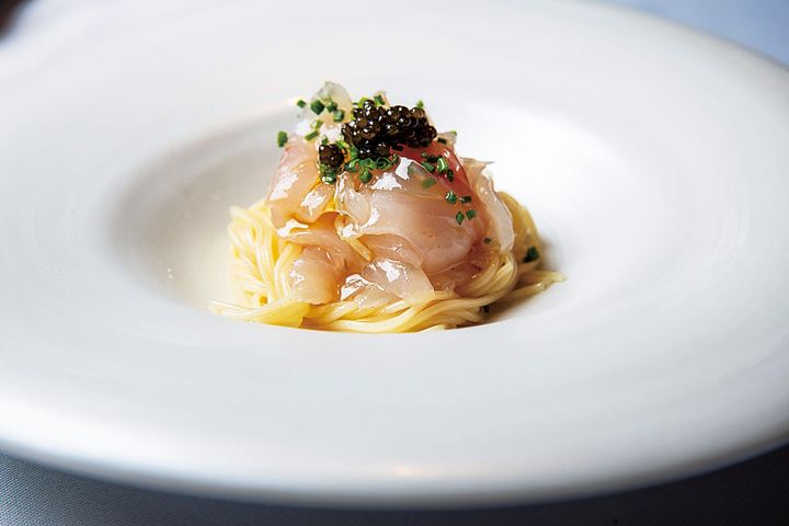 旬の魚を生かした冷製カッペリーニは前菜として通年提供。