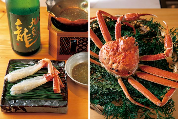 実家が魚屋を営み、北陸の海の幸に精通する小松辰平さんが腕を振るう「日本料理 えん」。純米酒を使ったカニ刺しのしゃぶしゃぶにゆで越前ガニなど、福井の冬の口福を召し上がれ。週に数回はフレンチ「カードル」として営業。