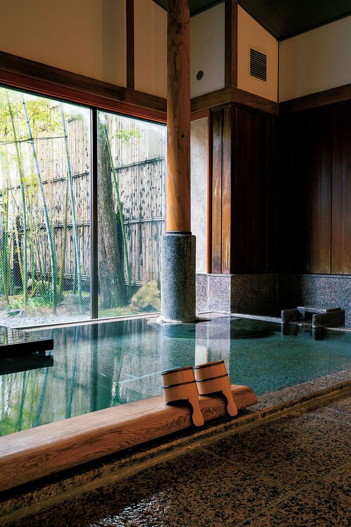 開湯1300年を誇る湯田川温泉の湯を源泉かけ流し。のんびり長湯したくなるぬるめの湯加減が絶妙。